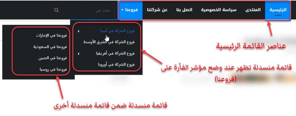 ملاحظة: يمكن إنشاء قوائم منسدلة متعددة في قائمة WordPress واحدة ، وبنفس الطريقة يمكن إنشاء قائمة منسدلة في قائمة منسدلة أخرى ، تظهر قائمة منسدلة أخرى عندما تضع مؤشر الماوس فوق القائمة المنسدلة الأولى على عنصر القائمة.