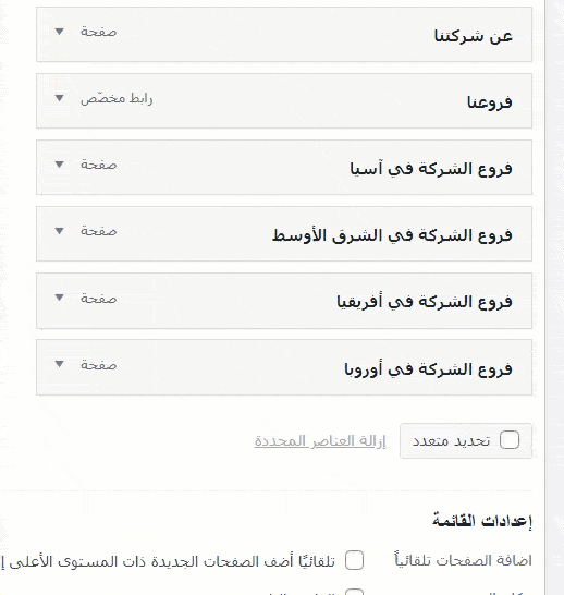 إذا كنت تريد تعديل إعدادات أخرى لأي قائمة ، فيمكنك تحديد القائمة التي تريد تعديلها من القائمة المنسدلة الظاهرة أعلى الصفحة. هذا مرئي في صفحة قائمة التحرير إذ بعد أن تختار القائمة التي تريدها ثم تنقر على زر (تحديد)، سيتم مباشرة نقلك إلى صفحة تحريرها وستكون الصفحة مشابهة لصفحة تحرير القائمة التي كانت ظاهرة.
