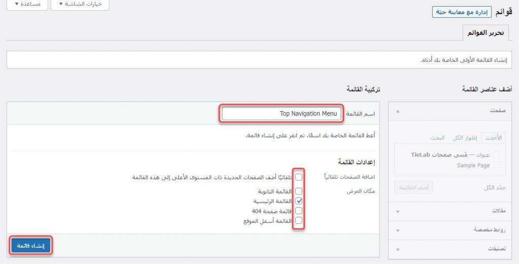 - إنشاء قائمة الووردبريس.