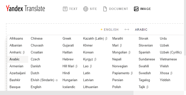 - يمكن استخدام موقع Yandex Translate مثل موقع استخراج النصوص من الصور.