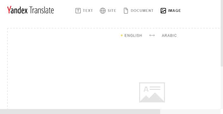 إذا كنت تريد ترجمة الصور من أجل استخراج النصوص منها فعليك استخدام موقع Yandex Translate حيث يمكنك من خلاله ترجمة الصور إلى أكثر من 45 لغة وأهمهم بالتأكيد العربية والإنجليزية وغيرها من اللغات.
