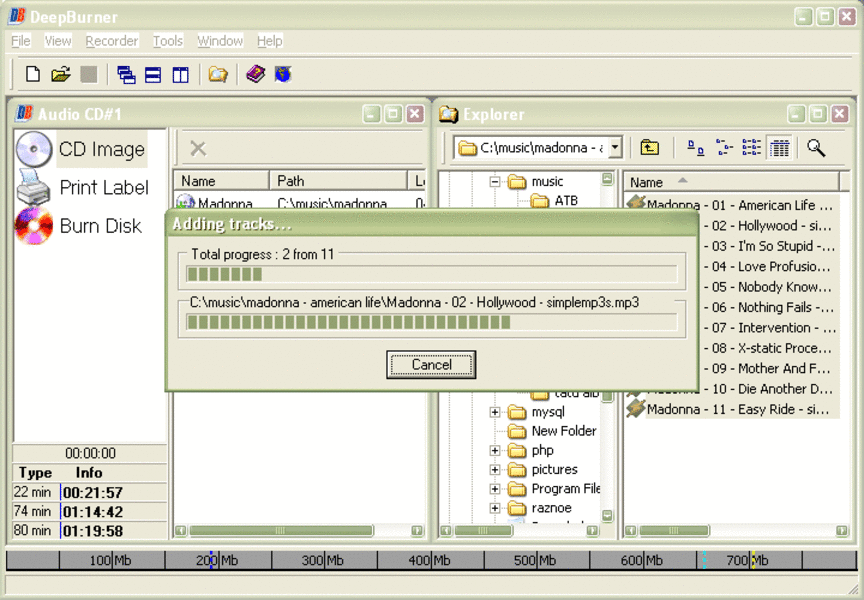 نسخ وتسجيل الصوت: DeepBurner يدعم أيضًا إمكانية نسخ وتسجيل الملفات الصوتية على الأقراص بصيغ مثل MP3 و WAV.